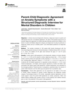 Parent-child diagnostic agreement on anxiety symptoms with a structured diagnostic interview for mental disorders in children.