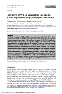 Increasing COVID-19 vaccination intentions: a field experiment on psychological ownership.