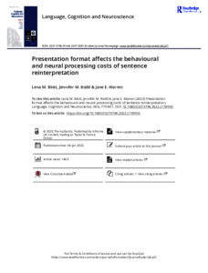 Presentation format affects the behavioural and neural processing costs of sentence reinterpretation.