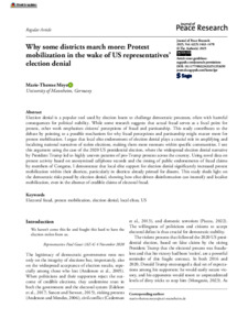 Why some districts march more: Protest mobilization in the wake of US representatives’ election denial.