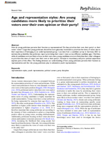 Age and representation styles: Are young candidates more likely to prioritize their voters over their own opinion or their party?