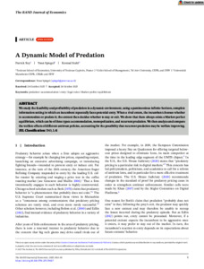 Rey, Patrick ; Spiegel, Yossi ; Stahl, Konrad (2025) A dynamic model of predation. Open Access The RAND Journal of Economics Hoboken, NJ ; Oxford tba tba 1-18 [Zeitschriftenartikel]
