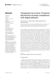 Transparent by choice: Proactive disclosures increase compliance with digital defaultsPaunov, Yavor ; Vogel, Tobias ; Ingendahl, Moritz ; Wänke, Michaela