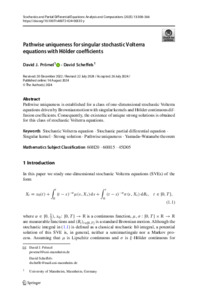 Pathwise uniqueness for singular stochastic Volterra equations with Hölder coefficientsPrömel, David J. ; Scheffels, David