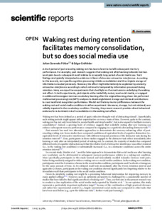 Waking rest during retention facilitates memory consolidation, but so does social media useQuevedo Pütter, Julian ; Erdfelder, Edgar