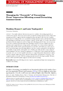 Managing the “downside” of downsizing: Firms' impression offsetting around downsizing announcements.