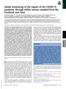Global monitoring of the impact of the COVID-19 pandemic through online surveys sampled from the Facebook user base.