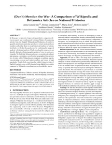 (Don't) mention the war: A comparison of Wikipedia and Britannica articles on national histories.