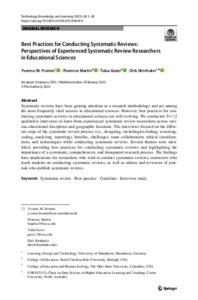 Best practices for conducting systematic reviews: Perspectives of experienced systematic review researchers in educational sciences.