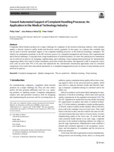 Supporting complaint management in the medical technology industry by means of deep learning.