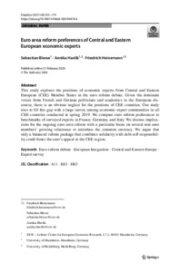 Euro area reform preferences of Central and Eastern European economic experts.