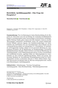 Betriebliche Ausbildungsqualität – Eine Frage der Perspektive?