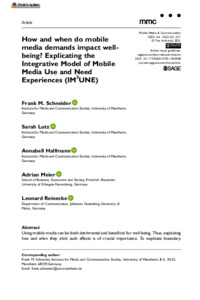 How and when do mobile media demands impact well-being? Explicating the integrative model of mobile media use and need experiences (IM3UNE).