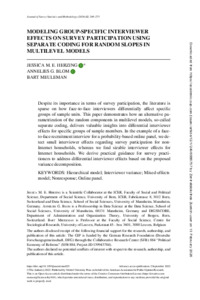 Modeling group-specific interviewer effects on survey participation using separate coding for random slopes in multilevel models.