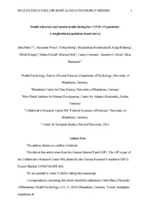 Health behaviors and mental health during the COVID-19 pandemic: A longitudinal population-based survey in Germany.