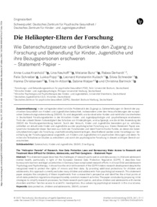 Die Helikopter-Eltern der Forschung : Wie Datenschutzgesetze und Bürokratie den Zugang zu Forschung und Behandlung für Kinder, Jugendliche und ihre Bezugspersonen erschweren.