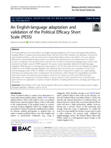 An English-language adaptation and validation of the Political Efficacy Short Scale (PESS).