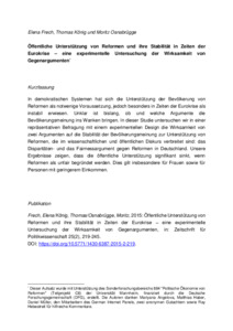 Öffentliche Unterstützung von Reformen und ihre Stabilität in Zeiten der Eurokrise - eine experimentelle Untersuchung der Wirksamkeit von Gegenargumenten.