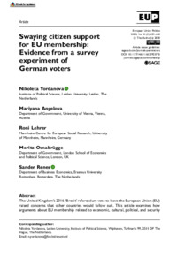 Swaying citizen support for EU membership: Evidence from a survey experiment of German voters.