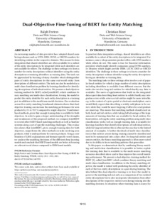Dual-objective fine-tuning of BERT for entity matching.