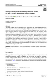 Putting learning back into learning analytics: Actions for policy makers, researchers, and practitioners.