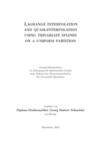 Lagrange interpolation and quasi-interpolation using trivariate splines on a uniform partition.