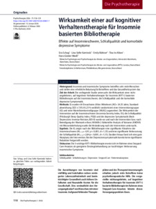 Wirksamkeit einer auf kognitiver Verhaltenstherapie für Insomnie basierten Bibliotherapie: Effekte auf Insomnieschwere, Schlafqualität und komorbide depressive Symptome.