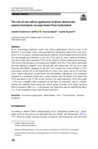 The role of vote advice application in direct-democratic opinion formation: An experiment from Switzerland.