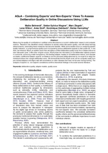 AQuA - Combining experts' and non-experts' views to assess deliberation quality in online discussions using LLMs.
