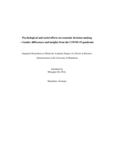Psychological and social effects on economic decision-making – gender differences and insights from the COVID-19 pandemic.