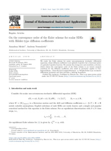 On the convergence order of the Euler scheme for scalar SDEs with Hölder-type diffusion coefficients.