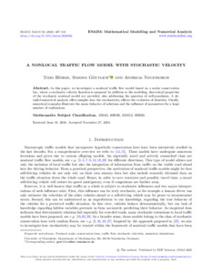A nonlocal traffic flow model with stochastic velocity.