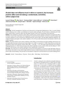 Alcohol does not influence trust in others or oxytocin, but increases positive affect and risk‑taking: a randomized, controlled, within‑subject trial.