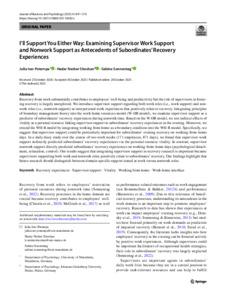 I’ll support you either way: Examining supervisor work support and nonwork support as antecedents of subordinates’ recovery experiences.