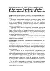 Lindemann, David ; Klaes, Christiane ; Zumstein, Philipp ORCID: 0000-0002-6485-9434