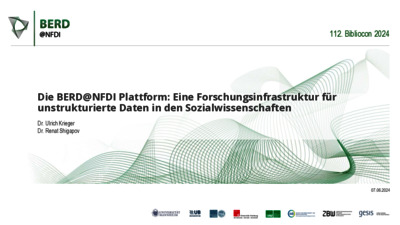 Rossenova, Lozana ; Limani, Fidan ; Fortmann-Grote, Carsten ; Kaplan, Angelika ; Thiery, Florian ; Latif, Atif ; Shigapov, Renat ORCID: 0000-0002-0331-2558 ; Zapilko, Benjamin ; Schubotz, Moritz ; Fliegl, Heike ; Tietz, Tabea