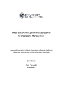 Foroughi, Amir (2023) Three essays on algorithmic approaches for operations management. Open Access Mannheim [Dissertation]