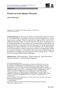 Wirtschaft und Wettbewerb = Competition Law and Economics
