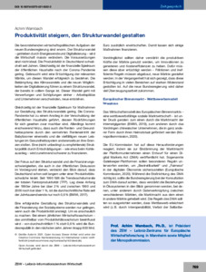 Herausforderungen für die deutsche Wirtschafts- und Finanzpolitik in der Legislaturperiode 2013-2017.